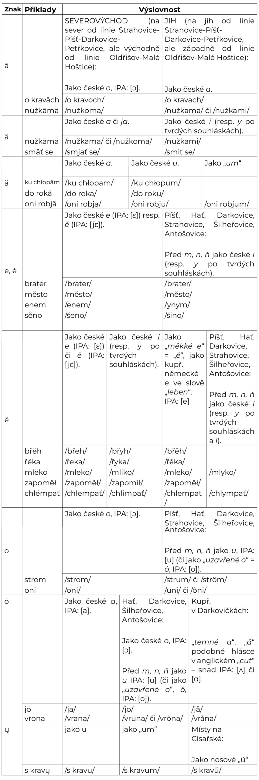 Jednotný zápis usnadňuje tvorbu slovníku i materiálů, ale také psaní v naší mluvě. Zároveň jsme se snažili, aby tímto pravopisem šlo psát tak, aby jej mluvčí naší mluvy mohli užívat, ať již dané slovo vyslovují jakkoliv. Kupř. slovo napsané jako vrōnāmä umožňuje přečíst jej tak, jak je v dané obci obvyklé Kravarákovi (/vranoma/) i Haťanovi (/vrunami/), nebo kupř. u slova ťmëť se, kde tak nemusíme rozepisovat čtyři různé výslovnosti: /čměč/, /čmič/, /ćmić/ a /ćměć/. Tento zápis samozřejmě není 100%, jedná se o kompromis, a zároveň jsme otevřeni dalším nápadům, jak jej ještě doladit a upravit tak, aby byl ještě funkčnější.